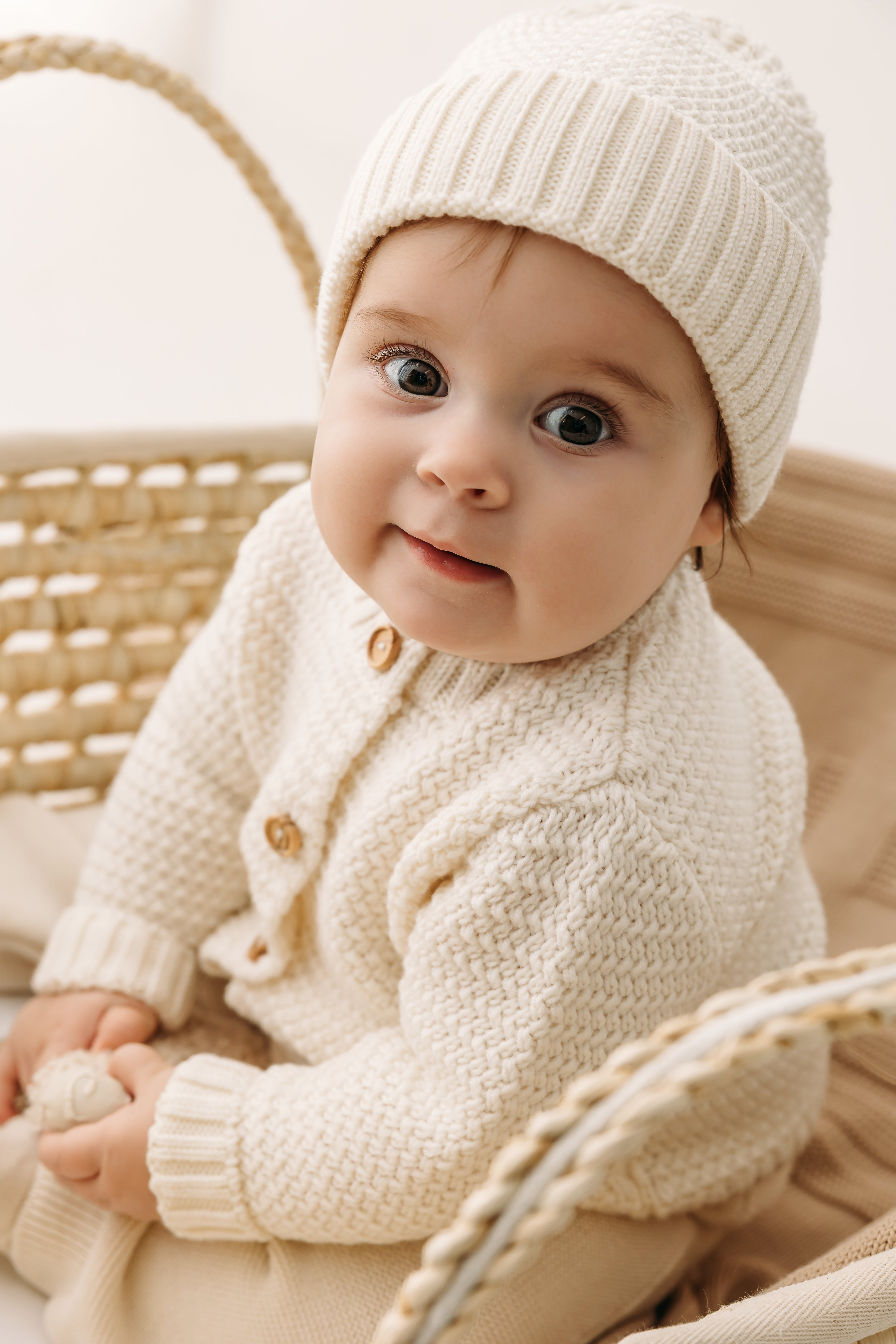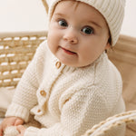 Ovčja volna merino je zelo kodrasta, z dolgimi vlakni, ki lahko učinkovito absorbirajo in odvajajo vlago, saj zadržijo do 30 % svoje teže v vodi. Zaradi teh lastnosti zagotavlja odlično toplotno izolacijo, zaradi česar je še posebej primerna za dojenčke, ki ne morejo uravnavati telesne temperature. Zato so ti pleteni kosi idealni za jesen in pomlad, pa tudi za hladne zime in toplejše poletne večere.