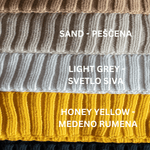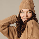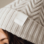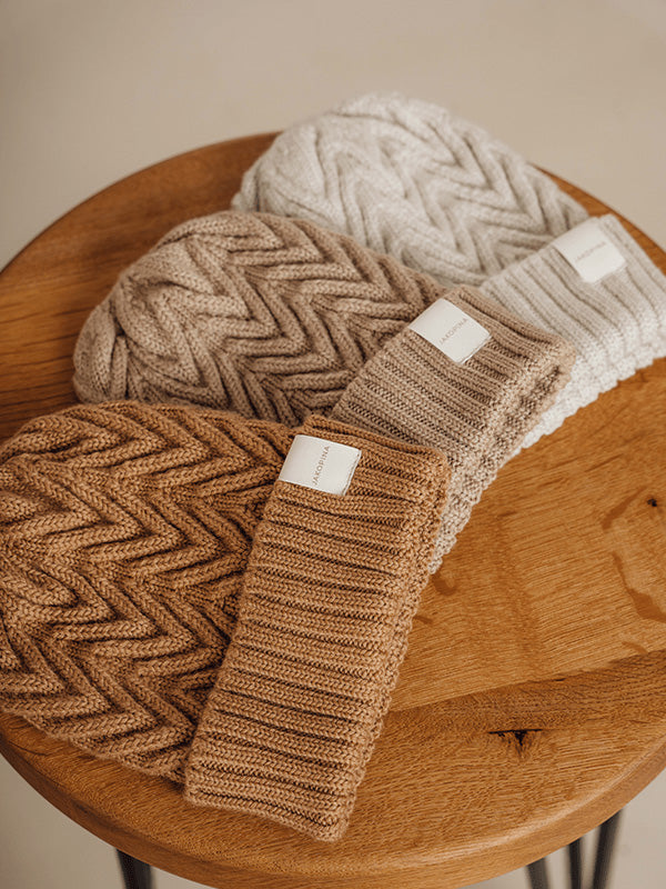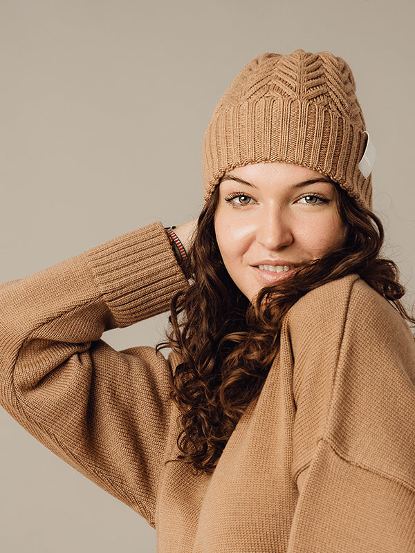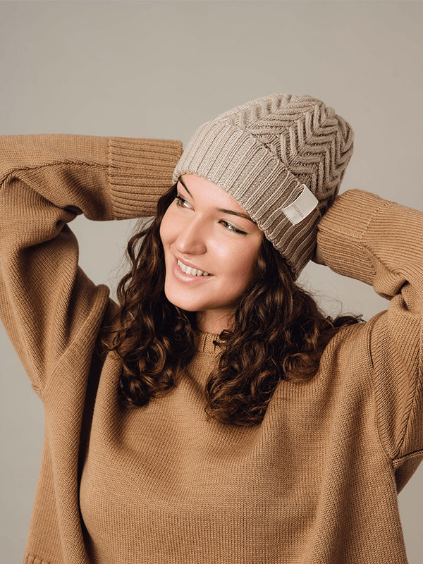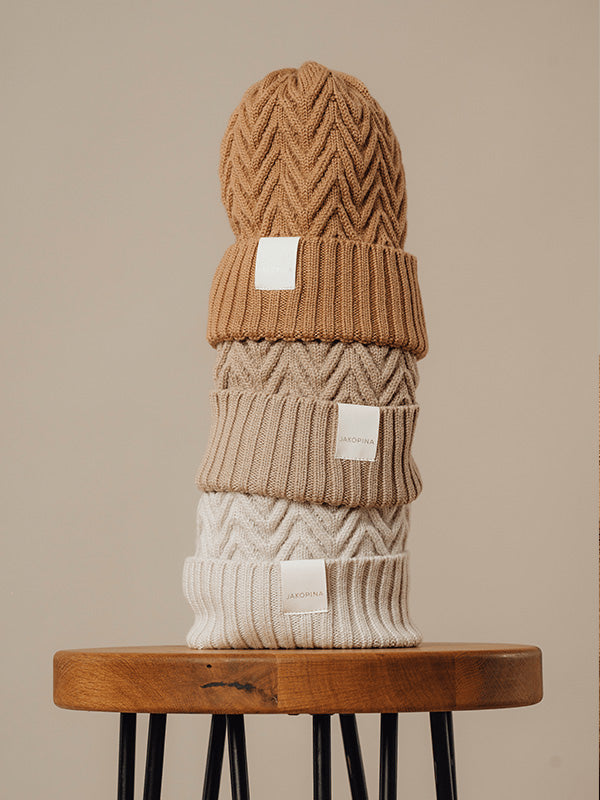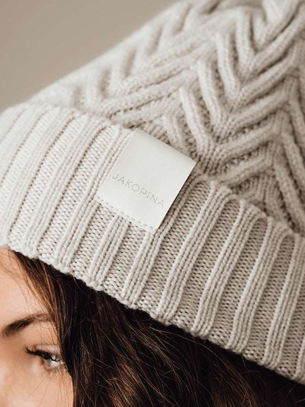 Pletena kapica je izdelana iz 100 % ekstra fine Merino volne s cable knit vzorcem. Merino volna na otip ne pika, je mehka ter izjemno dobro regulira toploto. Najboljše pa je, da je hipoalergena, primerna za osebe z občutljivo kožo ter že oprana z nežnimi, naravnimi sredstvi.