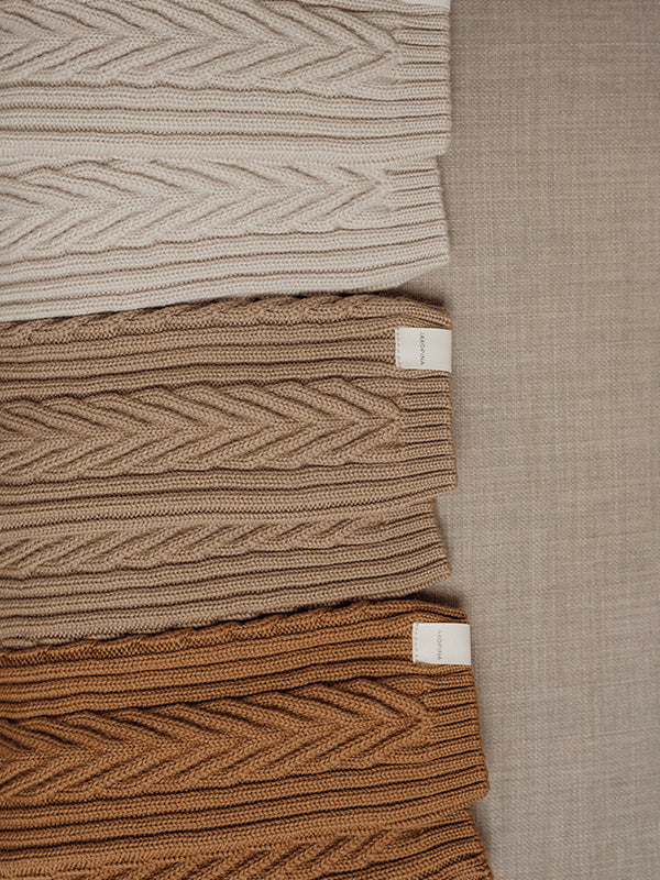 Pletene gamaše so narejene iz 100 % ekstra fine Merino volne. Na otip je Merino volna mehka in ne pika. Za popoln stajling lahko gamaše kombiniraš s kapo zase in za svojega malčka. Na voljo v štirih različnih barvah. Gamaše so že oprane z nežnimi, naravnimi sredstvi.