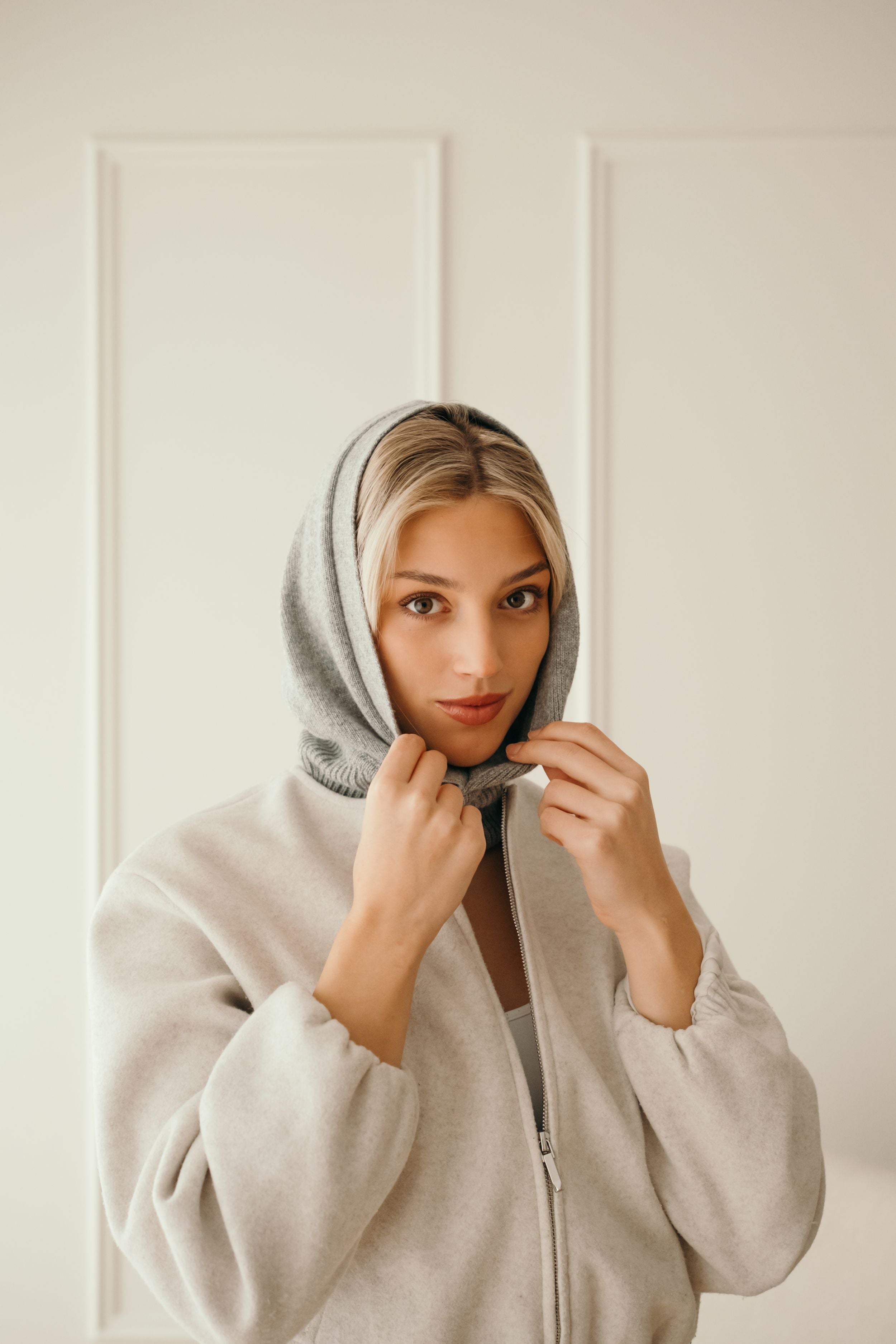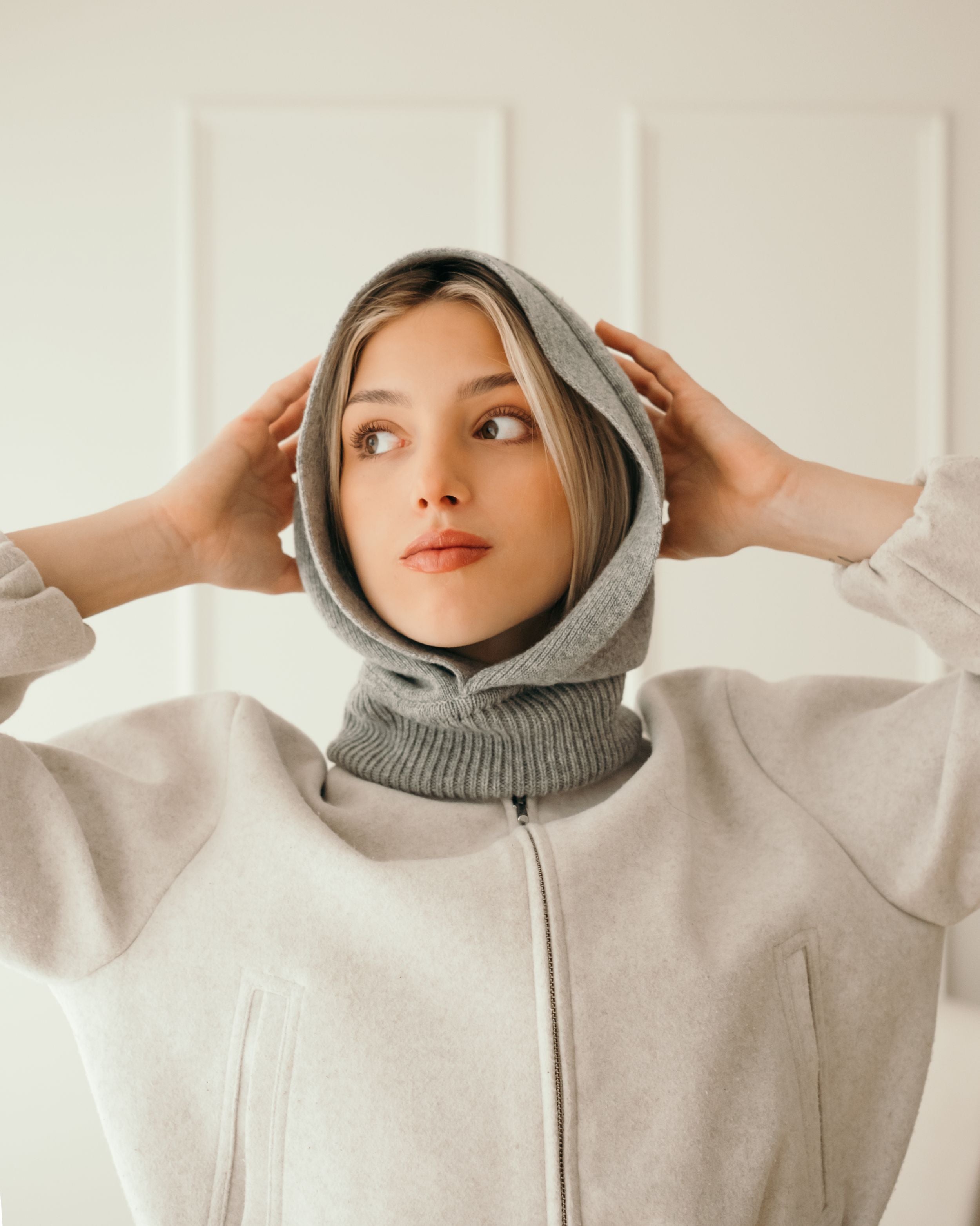 Zavijte se v toploto s to izjemno udobno balaklavo iz ekstra-fine volne in kašmirja, zasnovano za lahkotno vsakodnevno udobje in stil. Pletena iz vrhunske naravne volne, ponuja popolno mešanico izolacije, zračnosti in mehkobe na koži. Sodoben siv odtenek in rebrast izrez ustvarjata elegantno, minimalistično silhueto, ki jo lahko nosite čez jakne, puhovke, puloverje ali plašče.