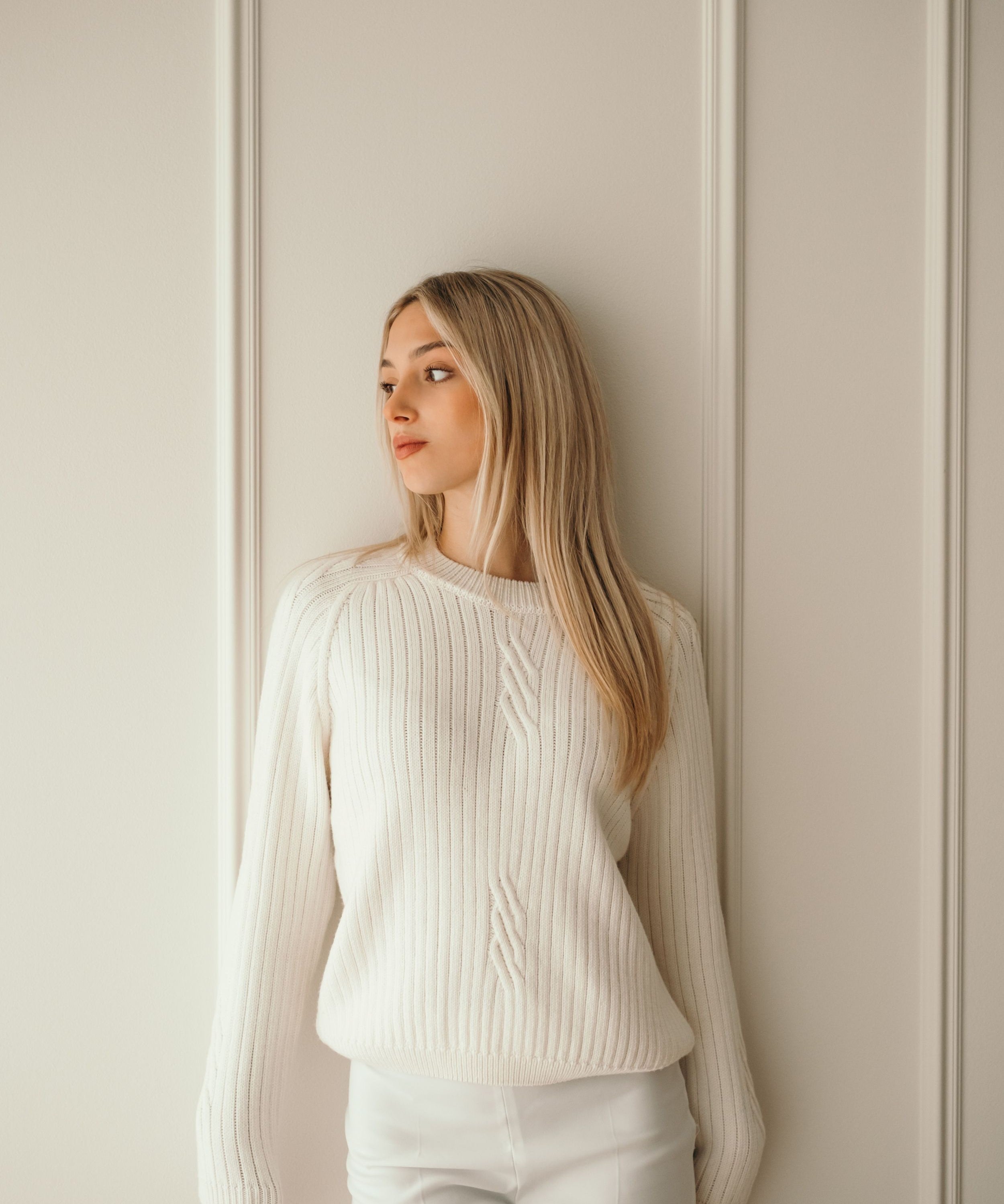 Rebrast pulover iz ekstra fine Merino volne
